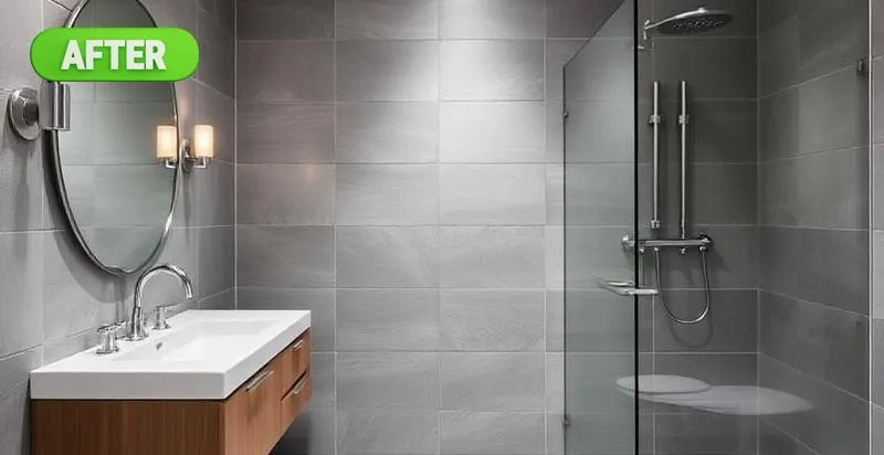 Luxurious bathroom makeover with modern fixtures and elegant tilework